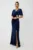 Rochie de ocazie din catifea cu maneci evazate si strass-uri in talie Verity Bleumarin – Reduceri Exclusive