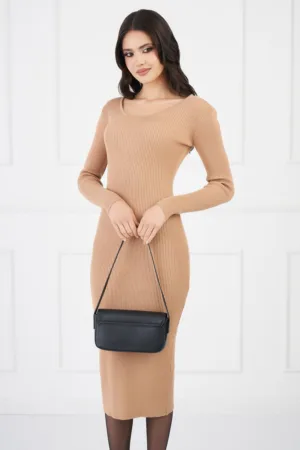 Rochie de ocazie premium din tull cu broderie si glitter Timeless Caramizie