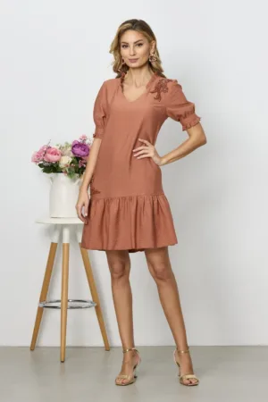 Rochie de ocazie din voal cu bust incretit Sensitive Peach
