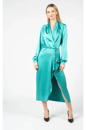 Rochie de ocazie premium din tafta satinata cu pliuri pe bust Davine Verde