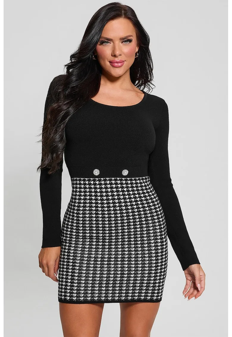 Rochie bodycon cu imprimeu houndstooth Gabriella