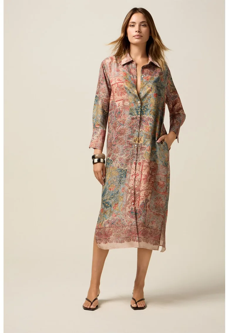 Caracteristici Culoare: multicolor Stil: casual Material: poliester Imprimeu: grafic Croiala: dreapta Lungime: midi Guler: clasic Lungime maneca: maneca lunga Sistem inchidere: nasturi Compozitie Exterior: 100% poliester.