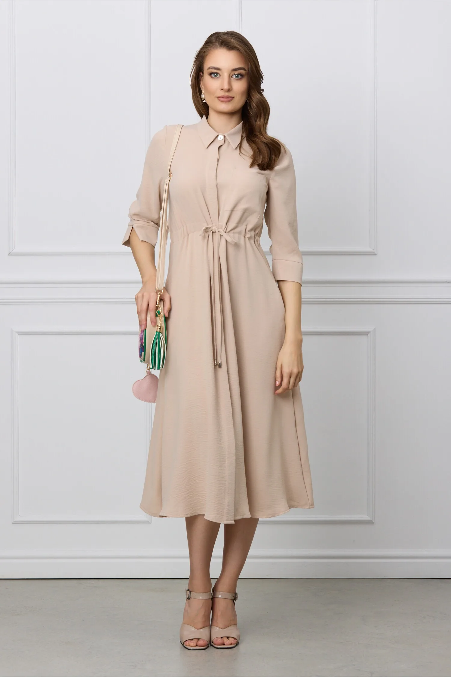Rochie Crina bej tip camasa cu snur in talie – Reduceri Exclusive