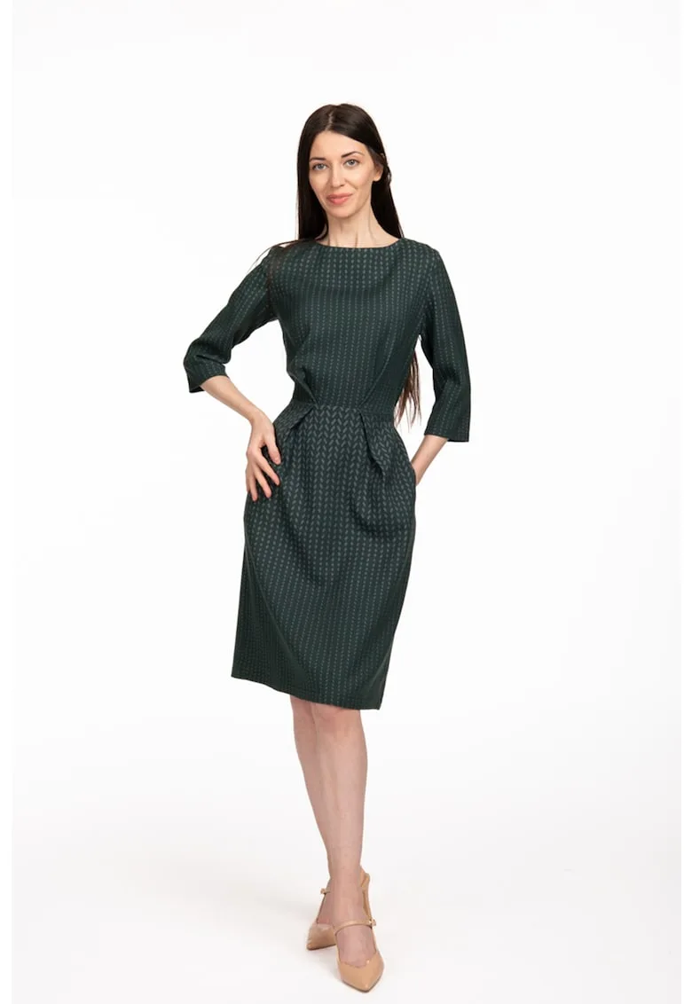Caracteristici Culoare: gri cenusiu – verde englez Stil: elegant Material: lana – poliamida Imprimeu: geometric Croiala: in a Lungime: scurta Decolteu: barcuta Lungime maneca: maneca medie Sistem inchidere: fermoar Compozitie Exterior: 80% lana – 20% poliamida.