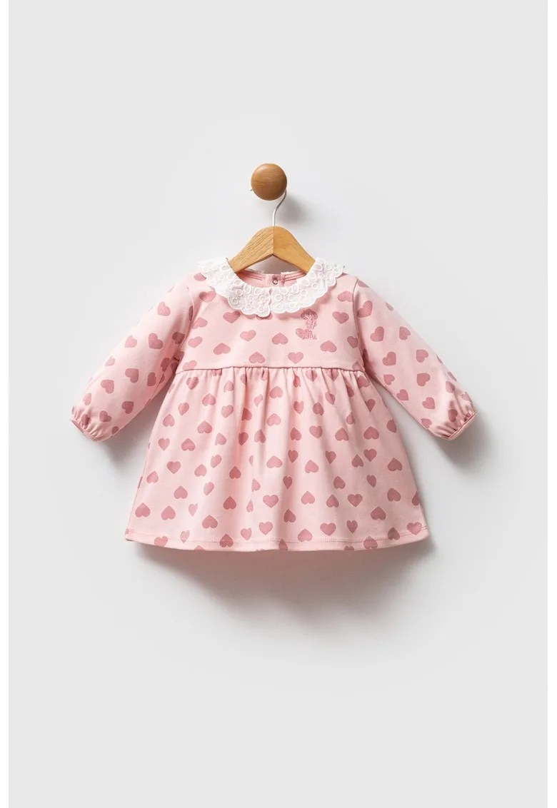 Caracteristici Culoare: roz deschis – roz prafuit Stil: casual Material: bumbac Imprimeu: inimioare Croiala: evazat Lungime maneca: maneca lunga Sistem inchidere: capse Colectie: primavara – vara – toamna – iarna Compozitie Exterior: 100% bumbac.