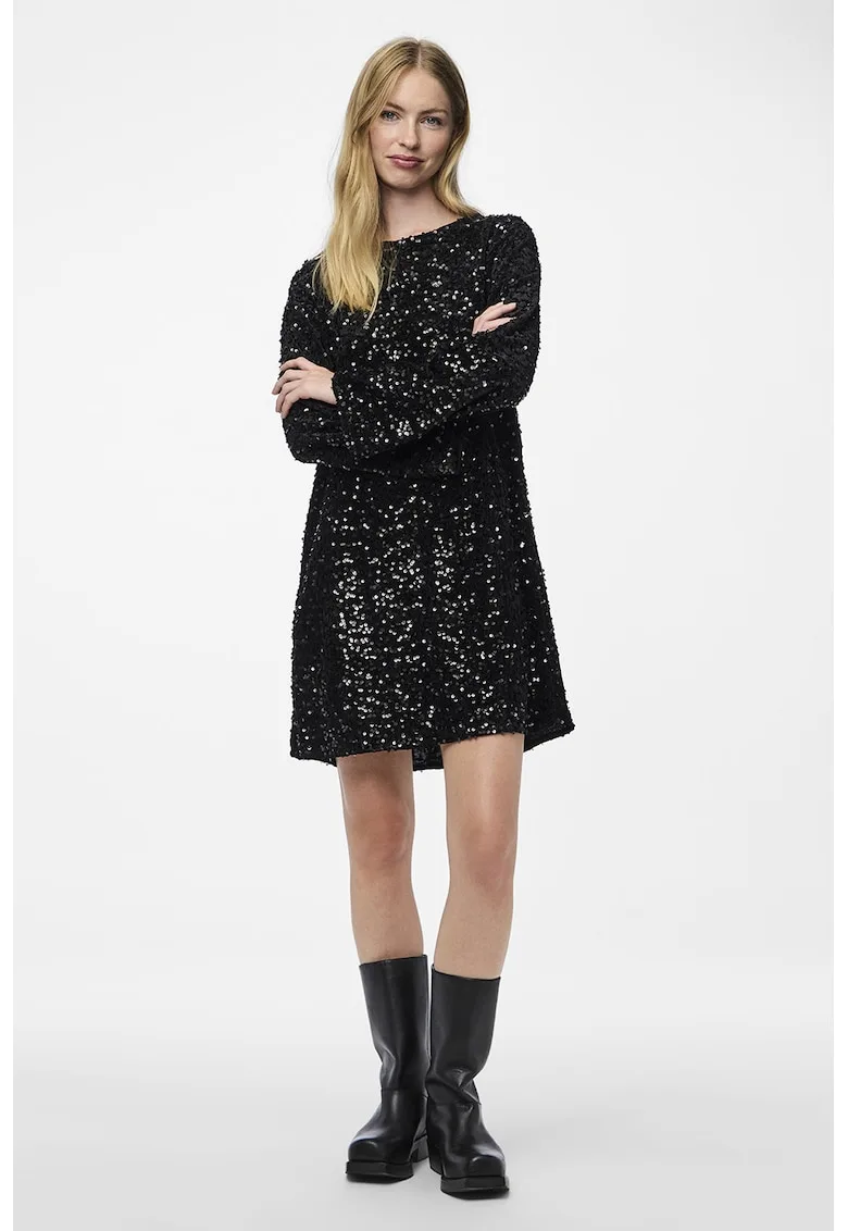 Rochie cu paiete – maneci lungi si funda pe partea din spate