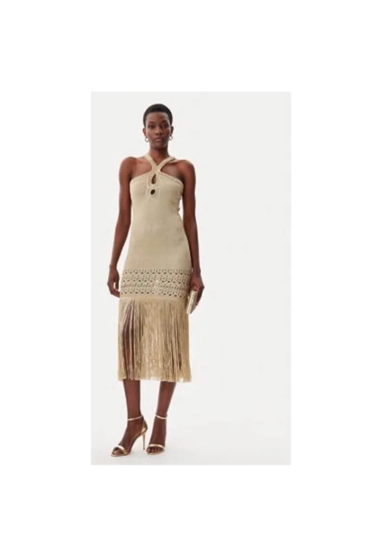 Rochie dama – 305172495 – Viscoza/Fibre metalice – Bej – Reduceri Exclusive