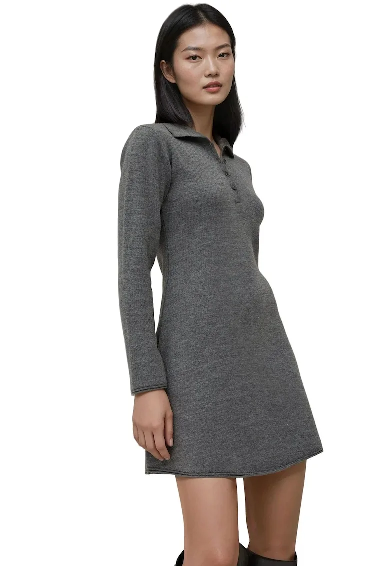 Rochie dama – guler polo – gri – tricot – Reduceri Exclusive