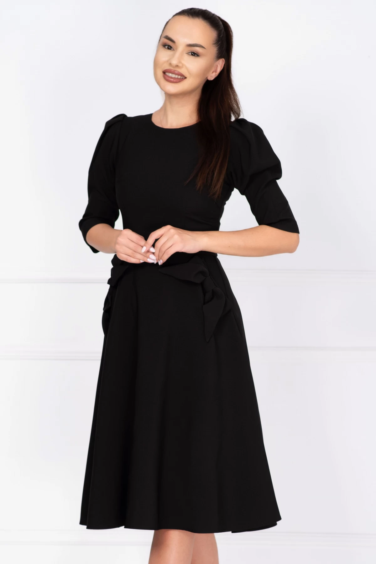 Descoperă rochia perfectă pentru evenimente speciale! Cumpără Rochie de zi in clos neagra Helene cu fundite decorative acum de la InPuff și profită de oferta limitată!