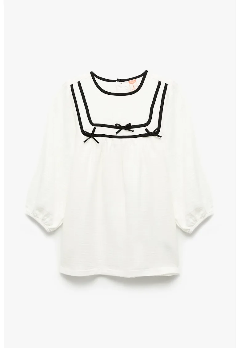 Caracteristici Culoare: alb – negru Stil: casual Material: bumbac Imprimeu: uni Croiala: lejer Lungime maneca: maneca lunga Colectie: primavara – vara – toamna – iarna Compozitie Exterior: 100% bumbac.