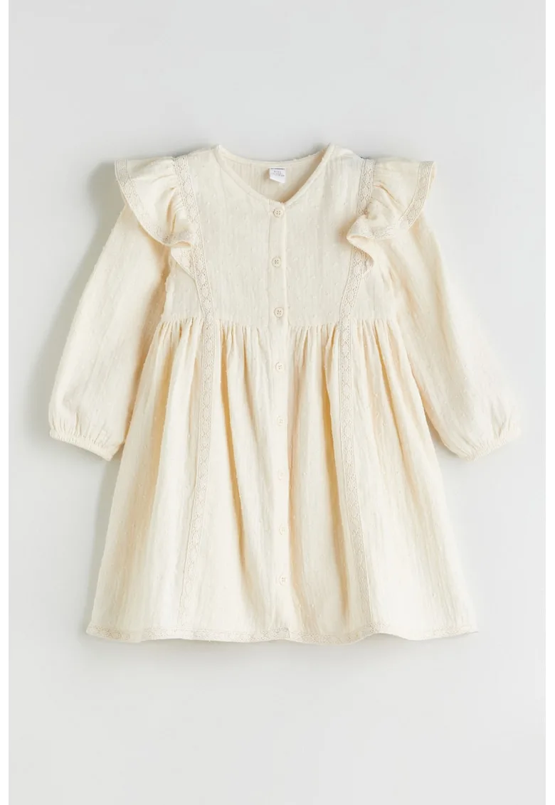 Rochie din bumbac cu maneci lungi si detalii cu volane – Reduceri Exclusive