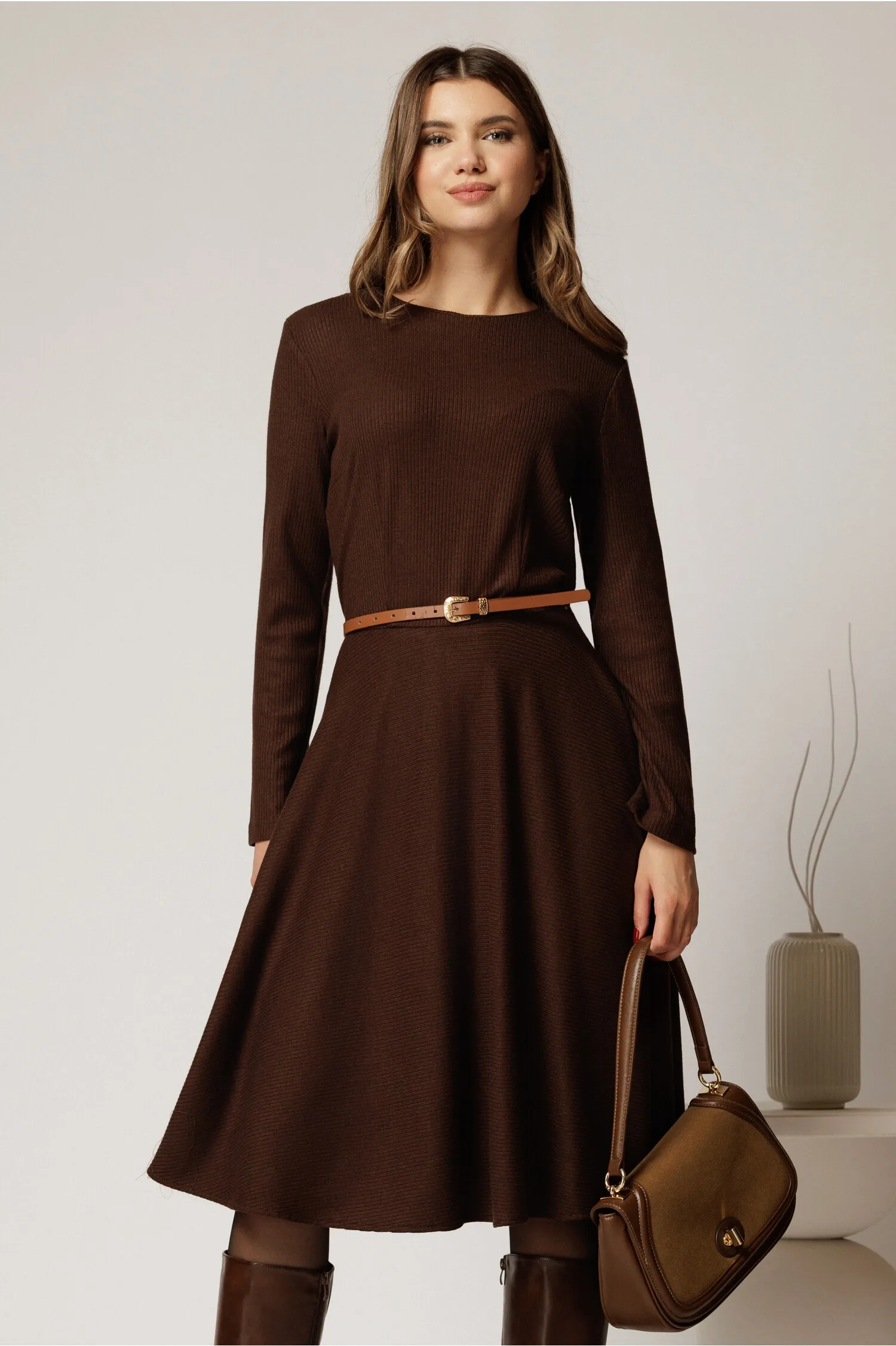 Rochie DY Fashion din tricot maro cu curea subtire și fusta clos – Reduceri Exclusive