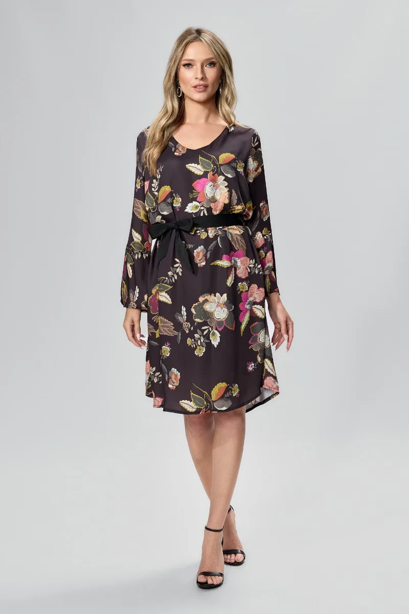 Rochie eleganta din voal satinat cu imprimeu floral Ronia Neagra – Reduceri Exclusive