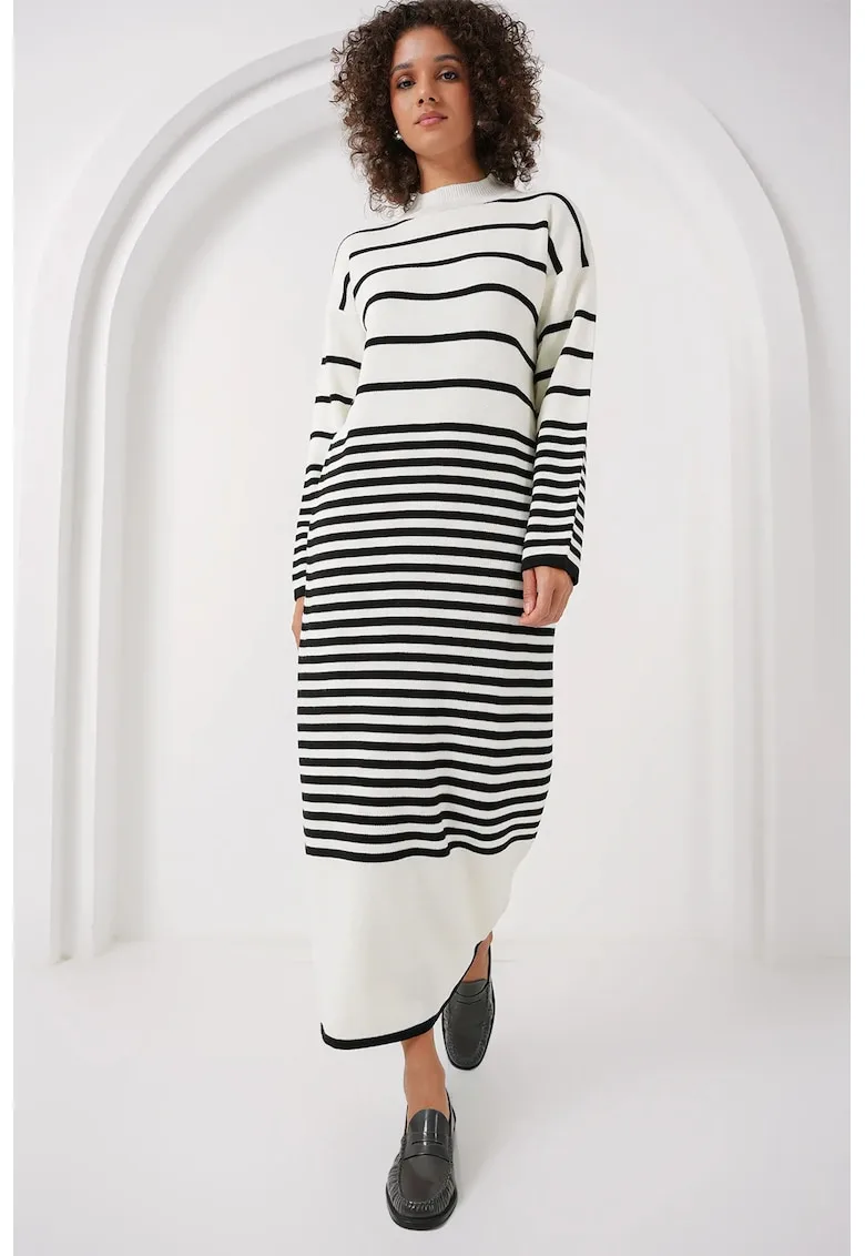 Descoperă rochia perfectă pentru evenimente speciale! Cumpără Rochie guler tricotat cu dungi – alb – tricot – acum de la FashionDays și profită de oferta limitată!