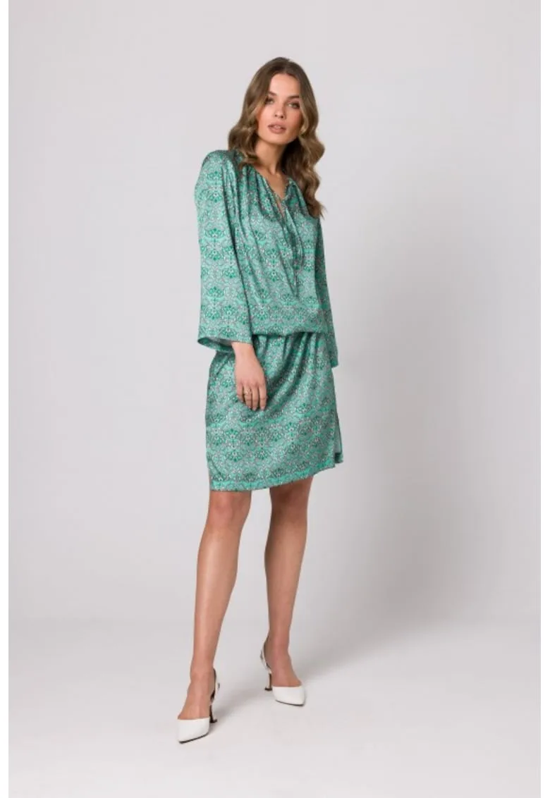 Caracteristici Culoare: verde Stil: casual – elegant Material: poliester Imprimeu: etnic Croiala: evazat Lungime: scurta Decolteu: decolteu in v Lungime maneca: maneca lunga Detalii: produs in europa Compozitie Exterior: 100% poliester.