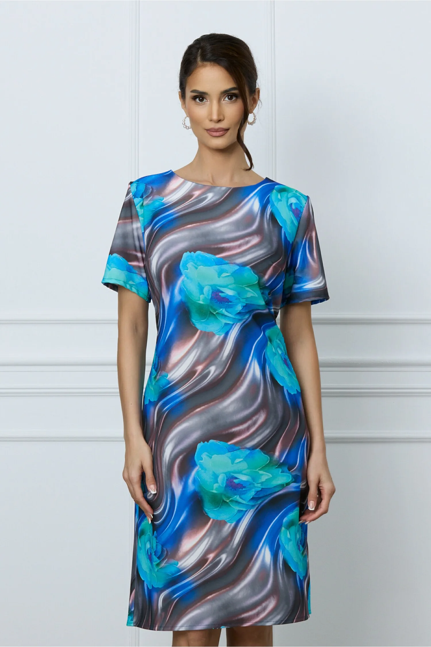 Rochie Mara gri cu imprimeu floral turcoaz – Reduceri Exclusive