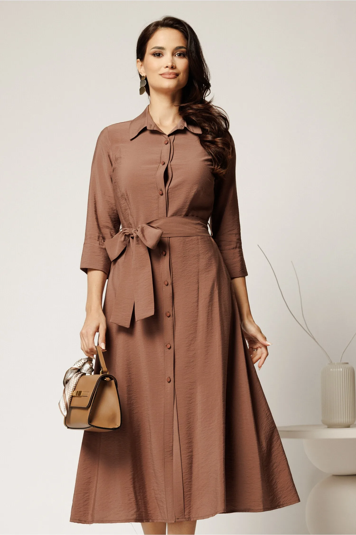Descoperă rochia perfectă pentru evenimente speciale! Cumpără Rochie maro tip camasa din viscoza cu cordon in talie acum de la DyFashion și profită de oferta limitată!