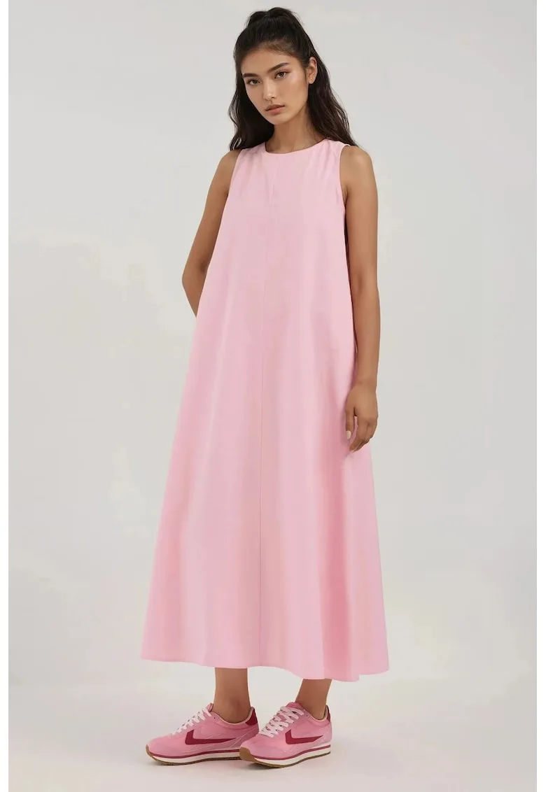 Rochie maxi – colectia Mixray – guler rotund – roz – textil