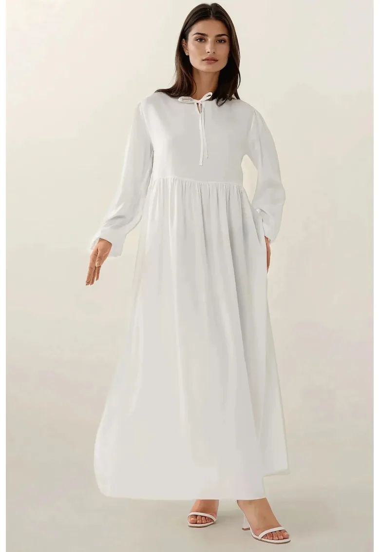 Rochie maxi – croiala in forma de A – guler rotund – alb – textil