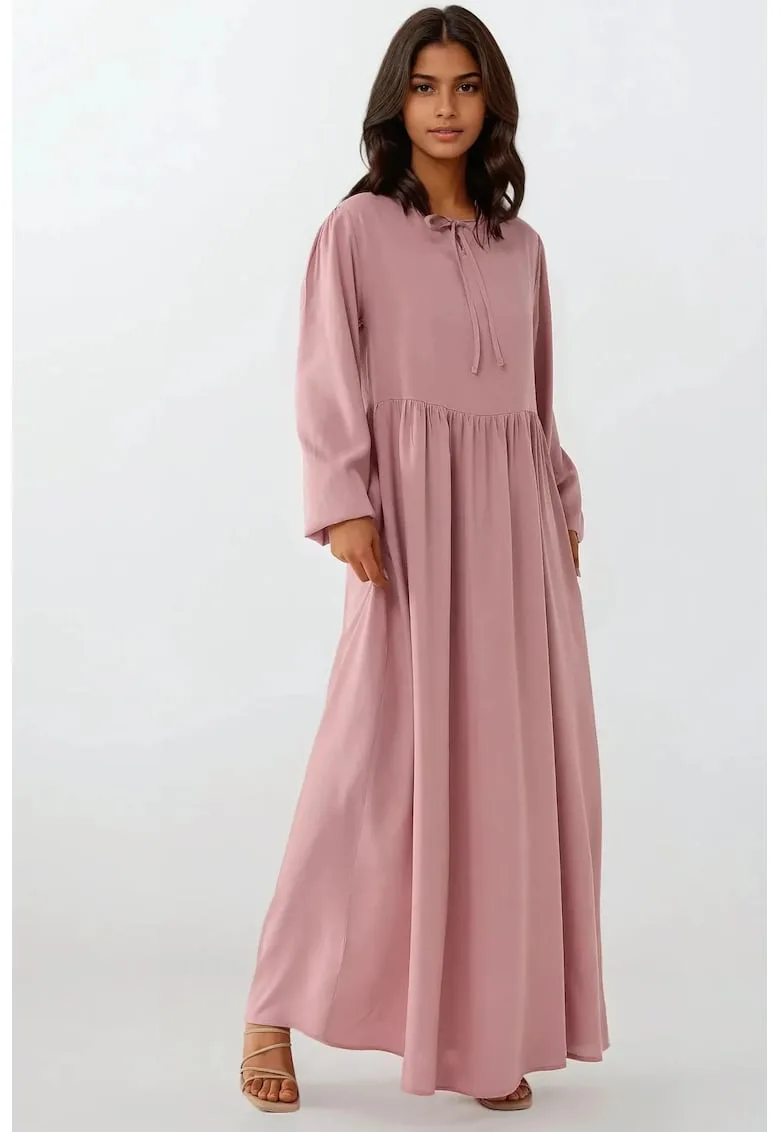 Rochie maxi – croiala in forma de A – guler rotund – roz – textil