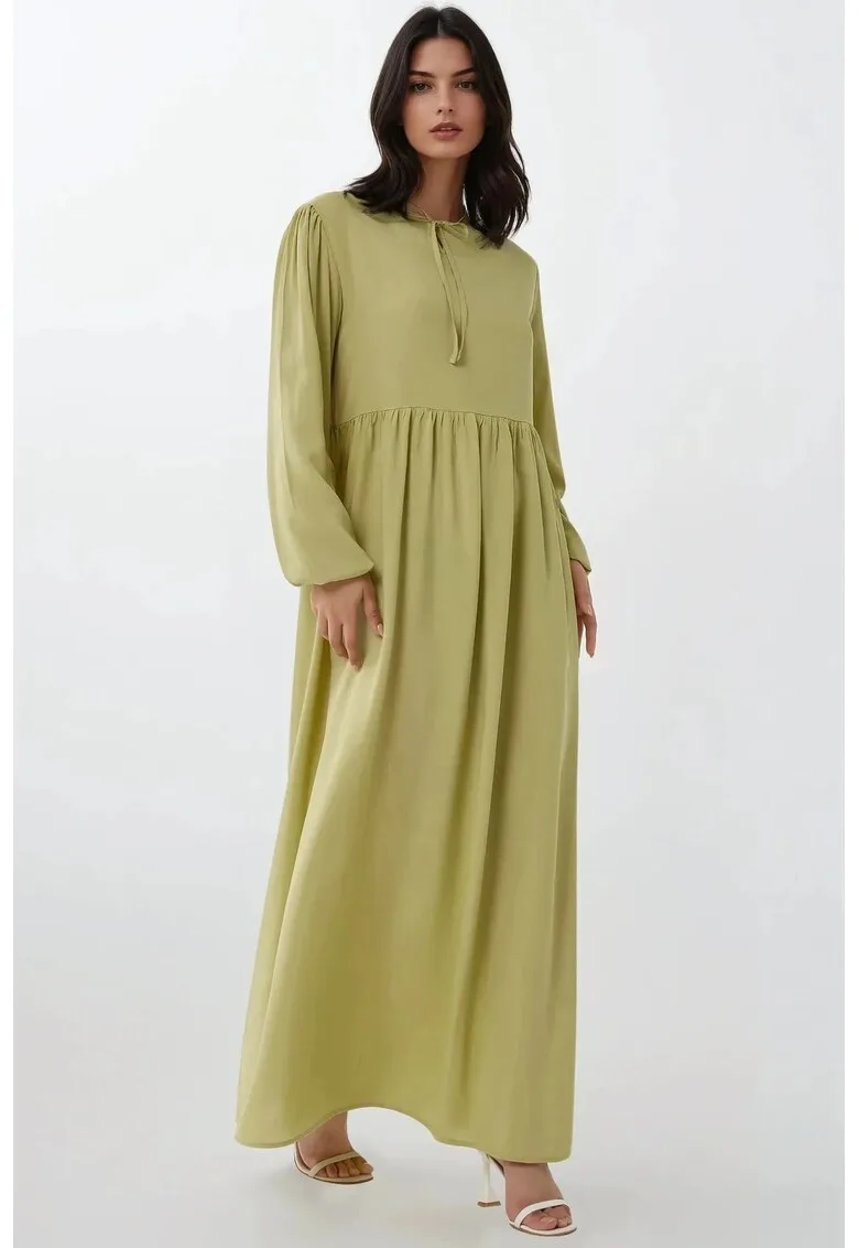 Rochie maxi – croiala in forma de A – guler rotund – verde – textil – Reduceri Exclusive