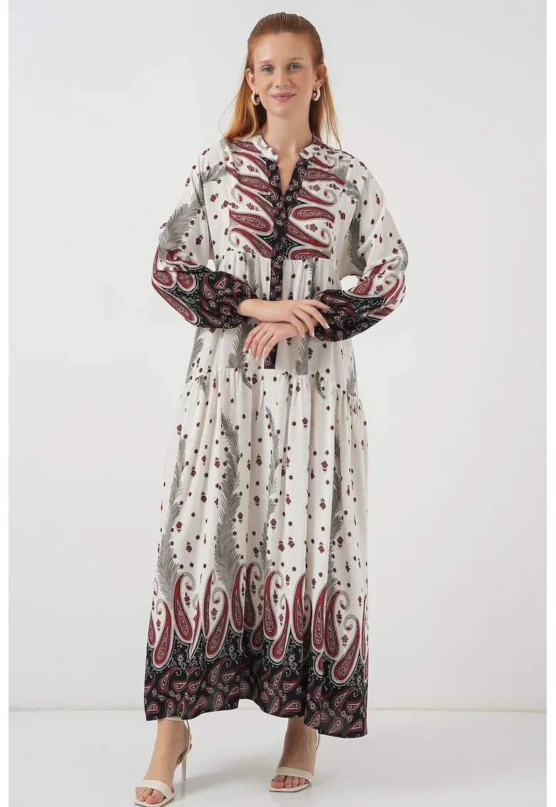 Rochie maxi dama HiCCUP cu decolteu în V și nasturi