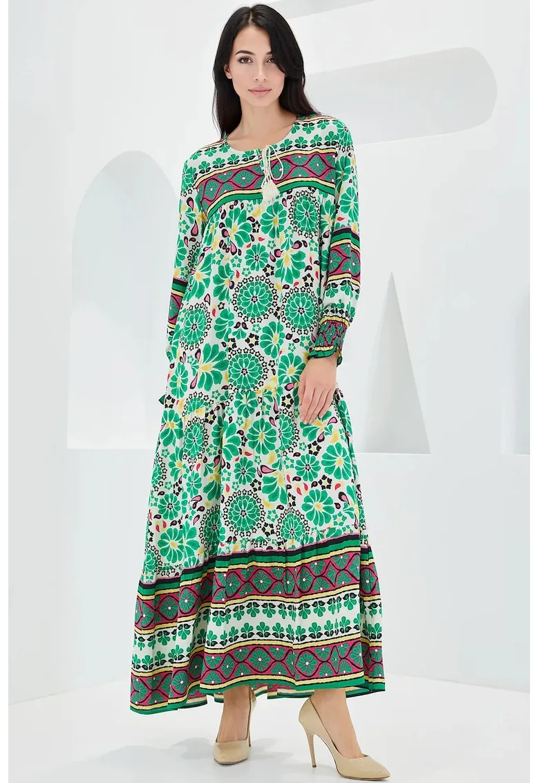 Rochie maxi dama – HiCCUP – cu imprimeu – inchidere cu snur – viscoza – multicolor – Reduceri Exclusive
