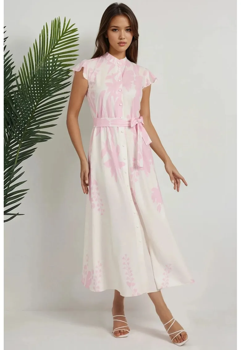Rochie maxi dama – imprimeu floral – roz – textil – Reduceri Exclusive