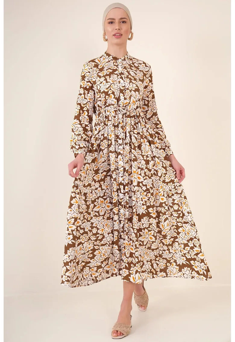 Rochie maxi dama viscoza – floral – decolteu rotund – multicolor – Reduceri Exclusive