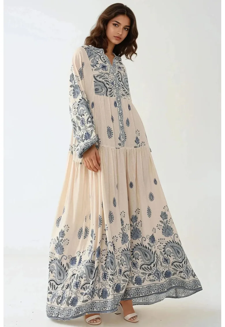 Rochie maxi – decolteu in V – albastra – material textil – Reduceri Exclusive