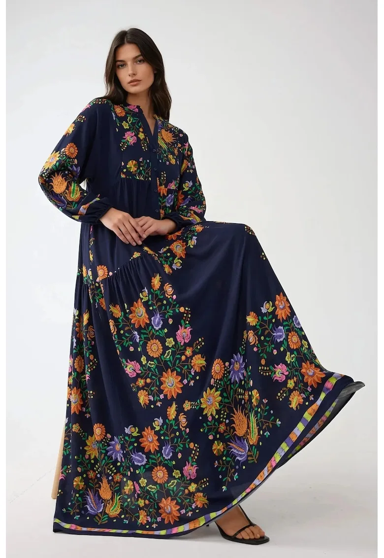 Rochie maxi –  decolteu in V – bleumarin – textil
