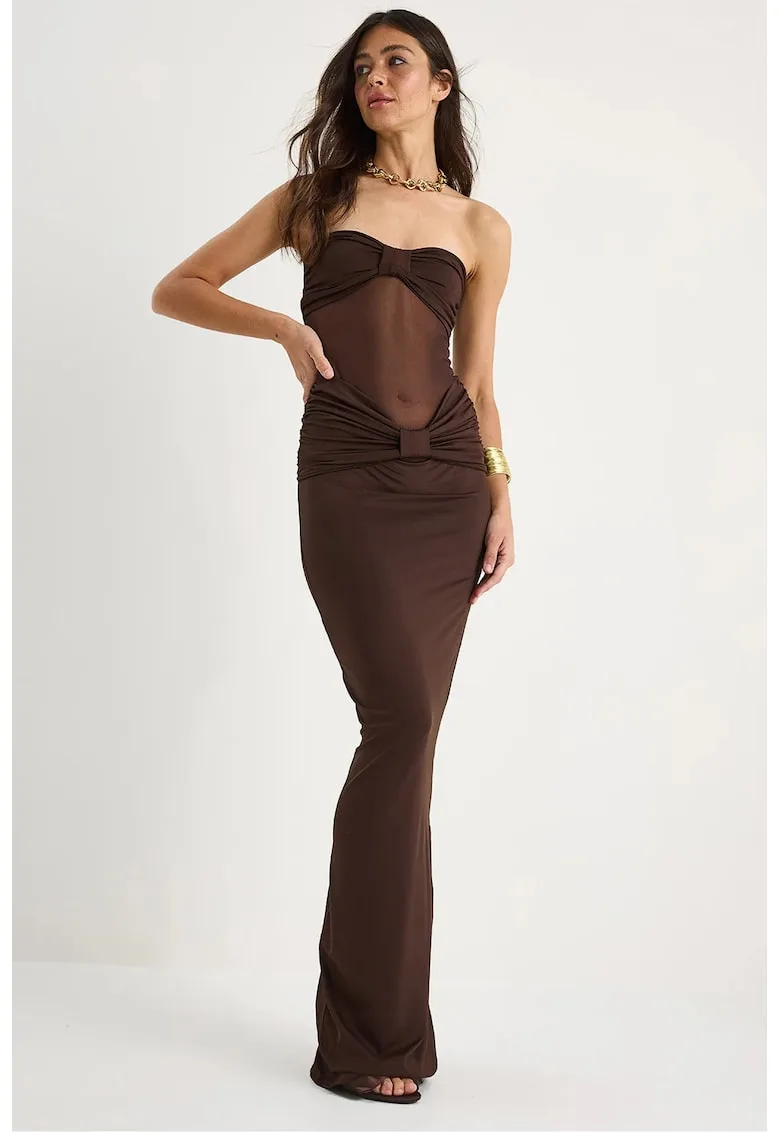 Rochie maxi fara bretele cu volane – maro – poliester-elastan – Reduceri Exclusive