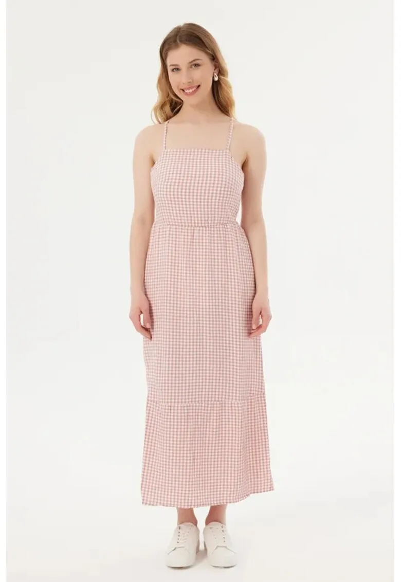 Rochie maxi – guler patrat – bretele spaghetti – textil