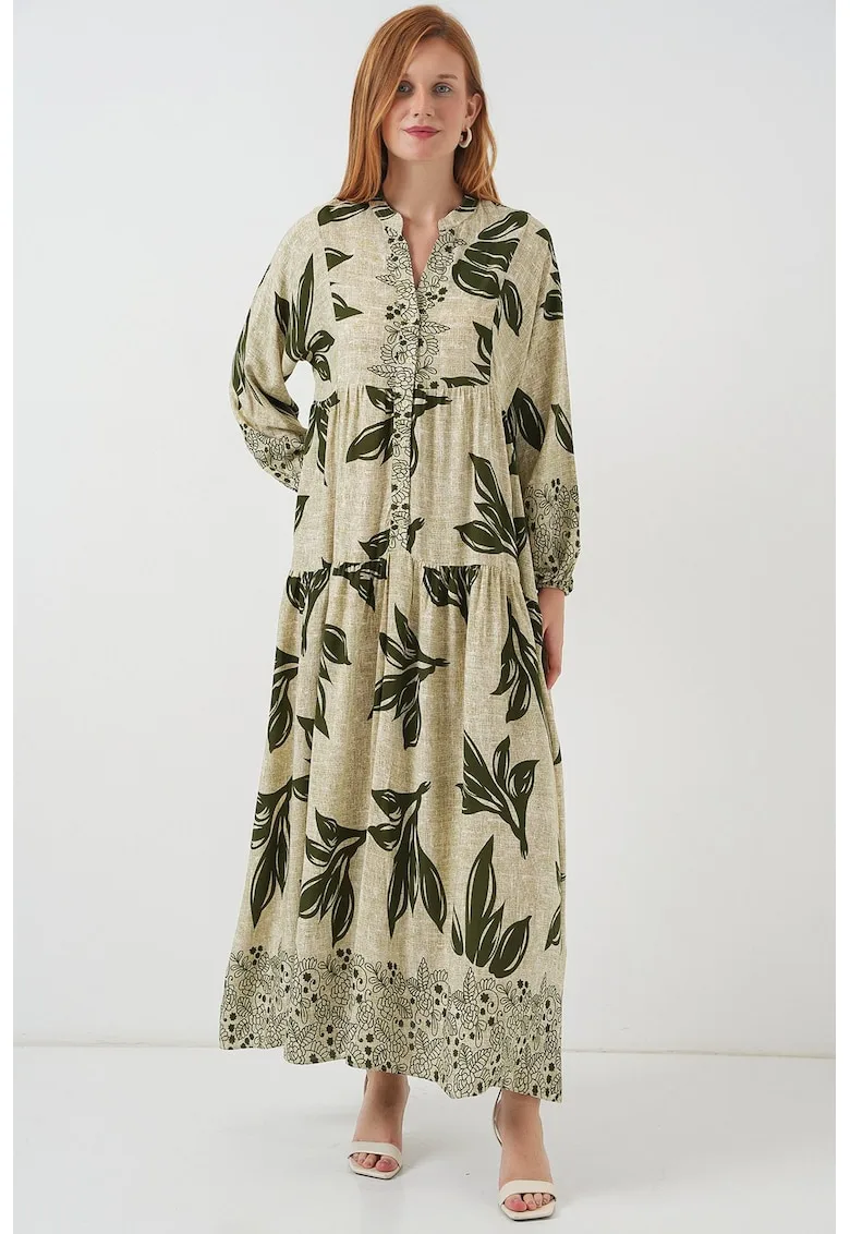 Rochie maxi HiCCUP BDART – inchidere cu nasturi – textil – verde padure