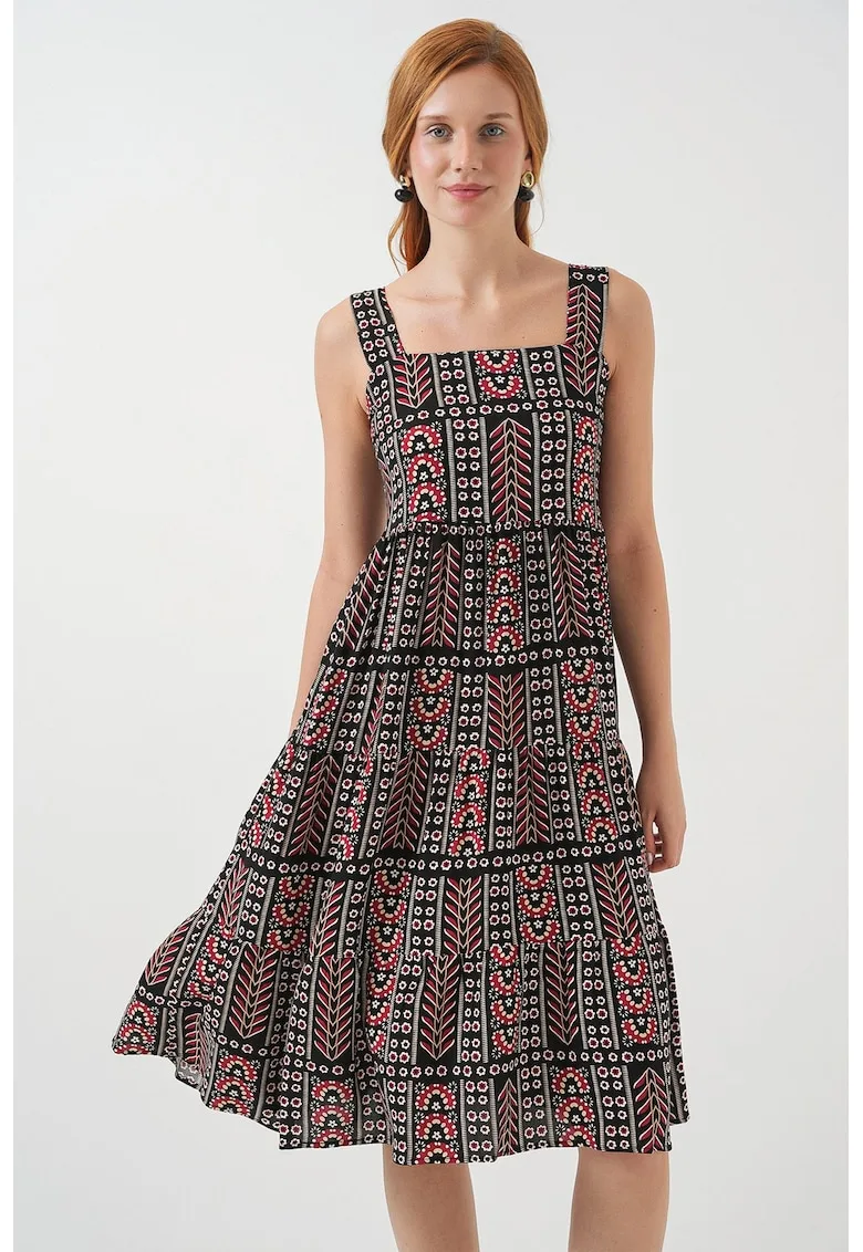 Rochie maxi – HiCCUP – imprimeu – guler patrat – negru – textil – Reduceri Exclusive