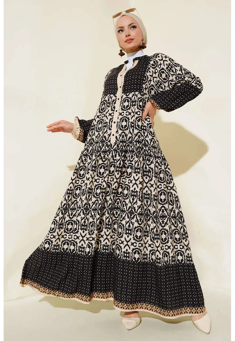 Rochie maxi – imprimeu – decolteu in V – multicolor – poliviscona – Reduceri Exclusive