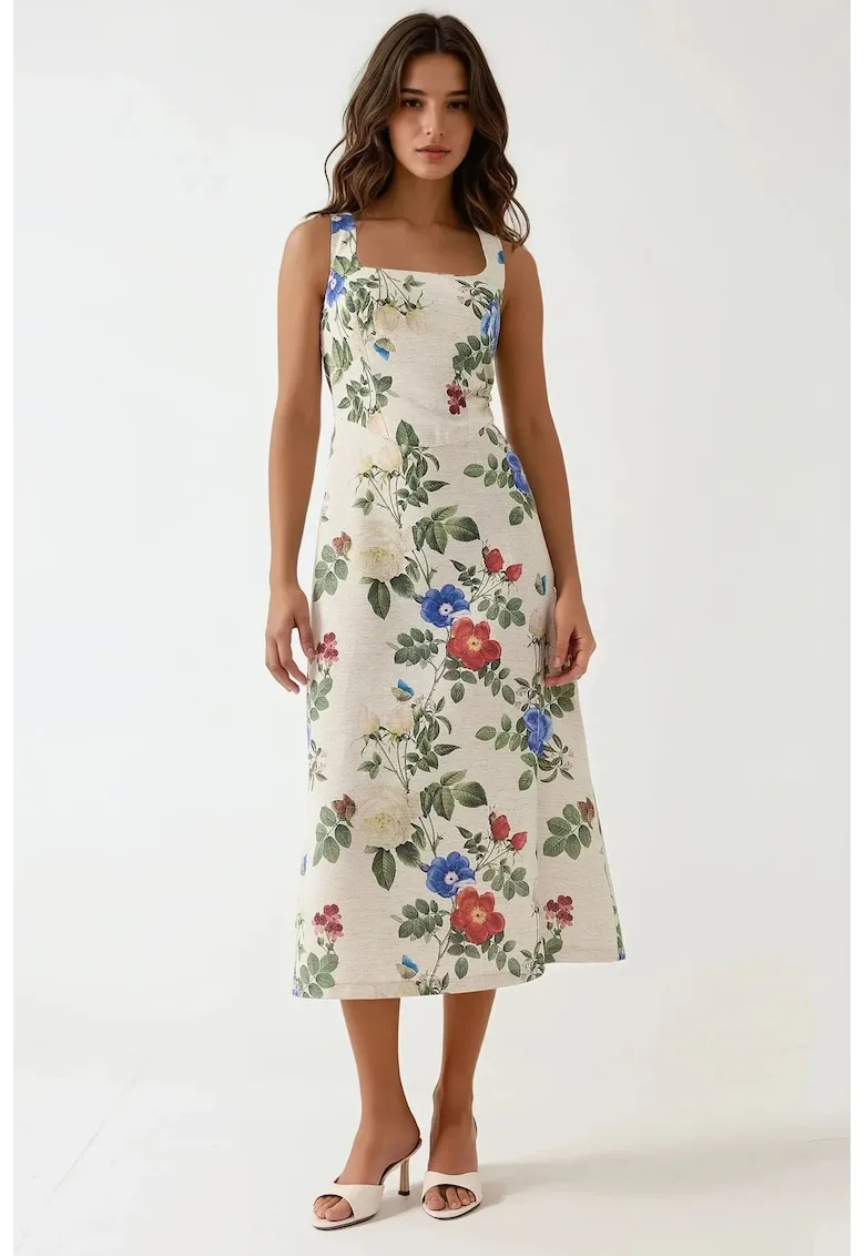 Rochie maxi – imprimeu floral – multicolor – material textil