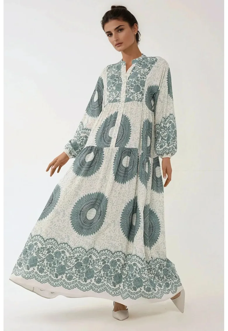 Rochie maxi – imprimeu – gri – viscoza – Reduceri Exclusive
