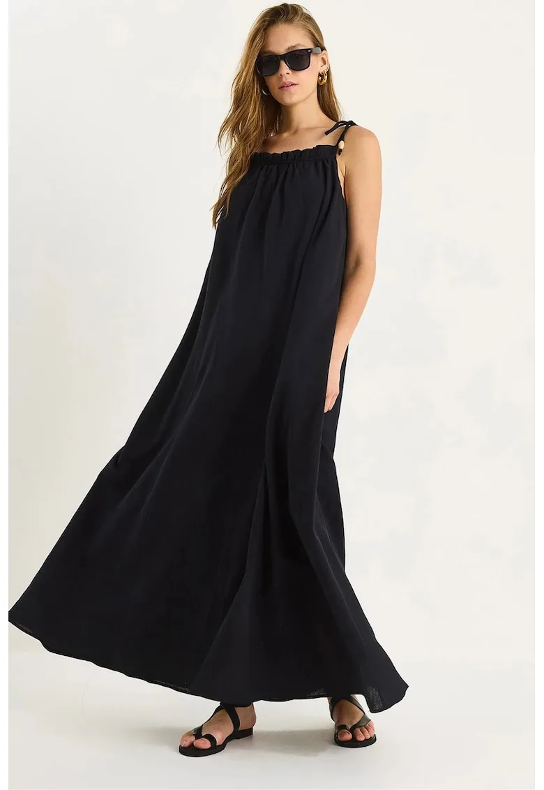 Rochie maxi LUCCI – decolteu patrat – textil – negru