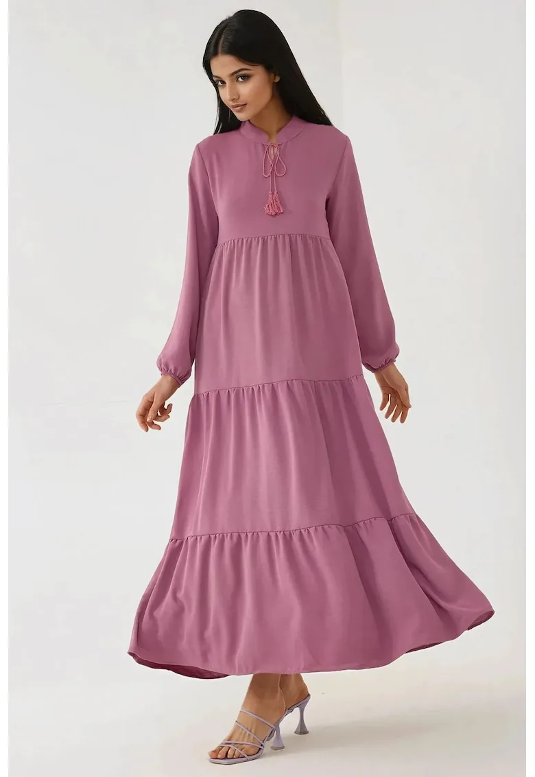 Descoperă rochia perfectă pentru evenimente speciale! Cumpără Rochie maxi – maneca lunga – guler rotund – mov – textil acum de la FashionDays și profită de oferta limitată!