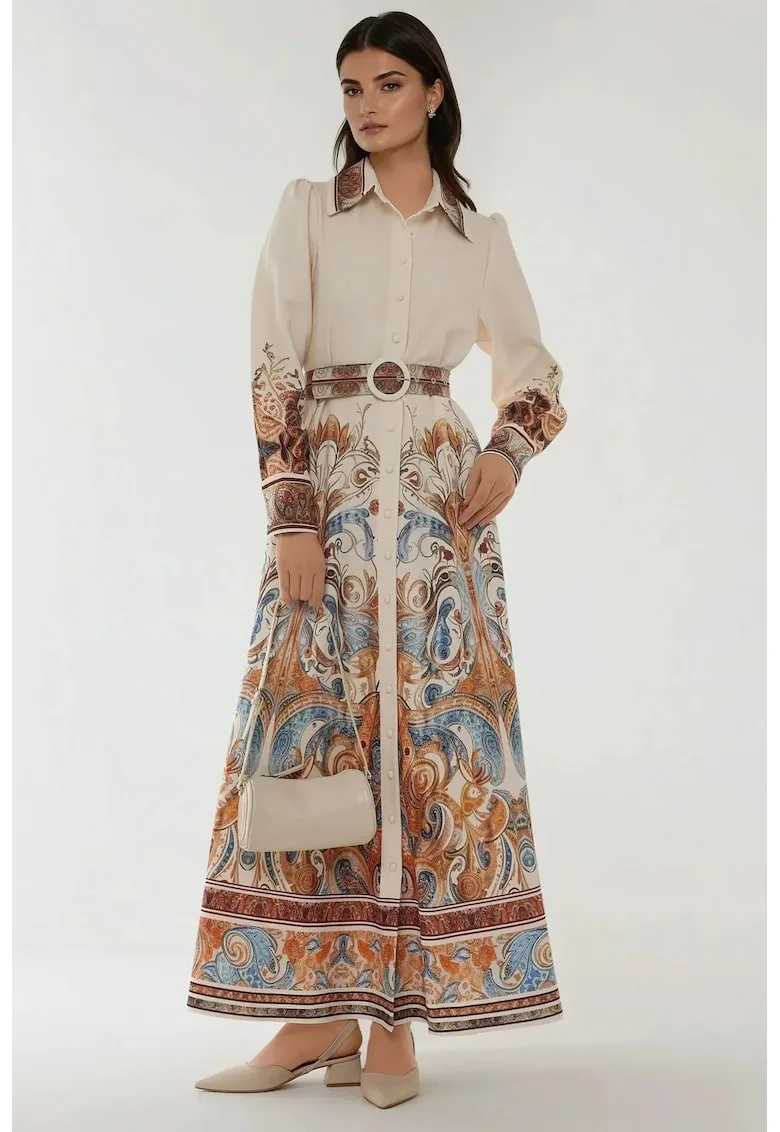 Rochie maxi maneca lunga – imprimeu – textil – Reduceri Exclusive