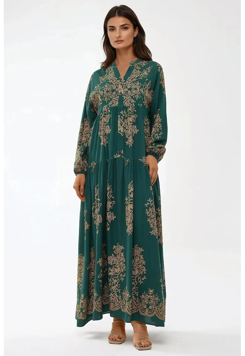 Rochie maxi – maneca lunga – verde – viscoza – Reduceri Exclusive