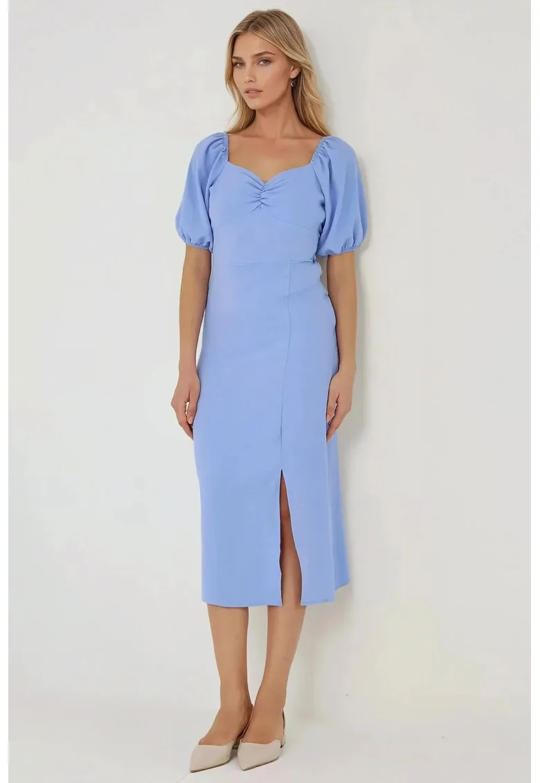 Descoperă rochia perfectă pentru evenimente speciale! Cumpără Rochie maxi – mulata cu guler inima – albastra – material subtire acum de la FashionDays și profită de oferta limitată!
