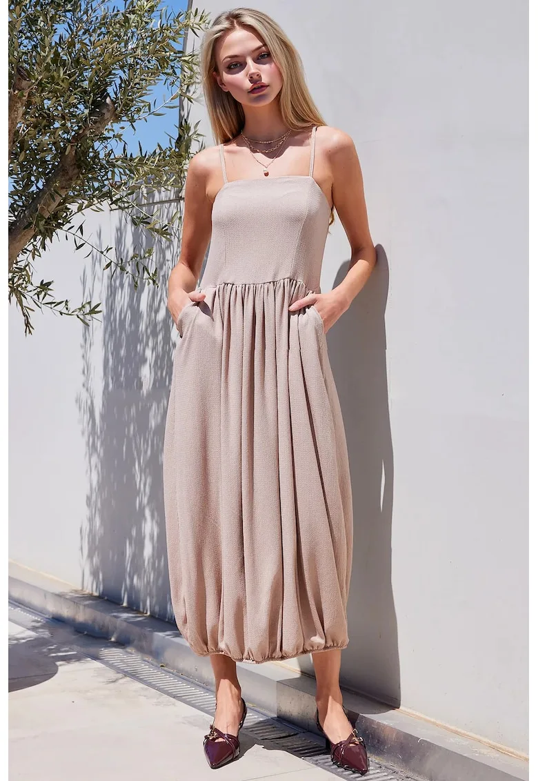 Rochie maxi tricotata HiCCUP – texturata – guler patrat – bej – poliester – Reduceri Exclusive