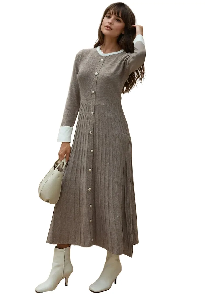Rochie maxi tricotata – texturata – maro melange – material tricot – Reduceri Exclusive