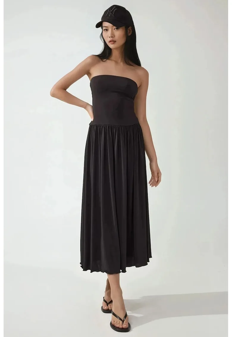 Rochie midi 2 in 1 – fara bretele – elastica – negru – jerseu – Reduceri Exclusive