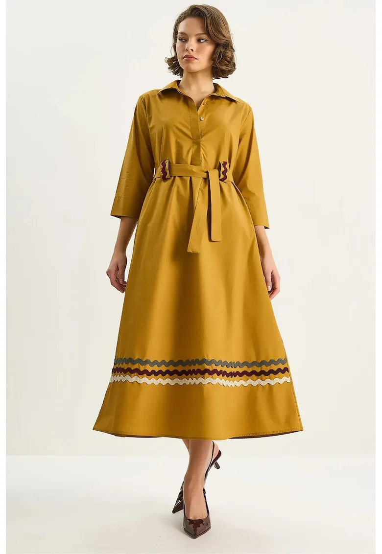 Rochie Midi – Brodata – Galben – Textil – Reduceri Exclusive