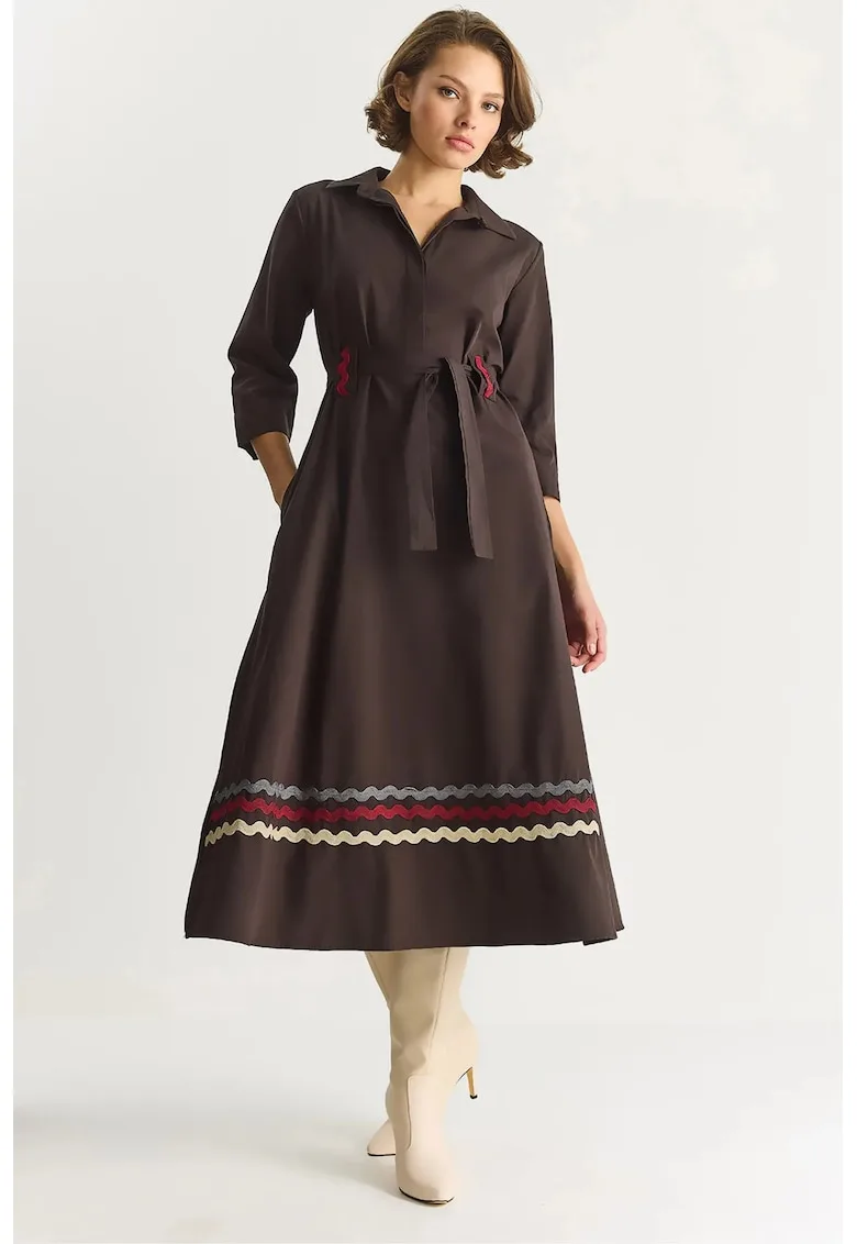 Rochie midi – brodata – maro mocha inchis – textil – Reduceri Exclusive