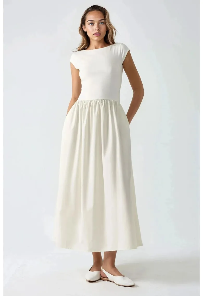 Descoperă rochia perfectă pentru evenimente speciale! Cumpără Rochie midi contrastanta – eleganta – bej – textil acum de la FashionDays și profită de oferta limitată!