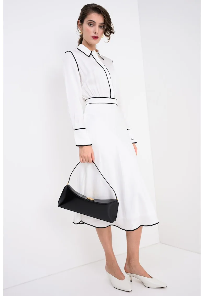 Rochie midi cu croiala evazata si accente contrastante